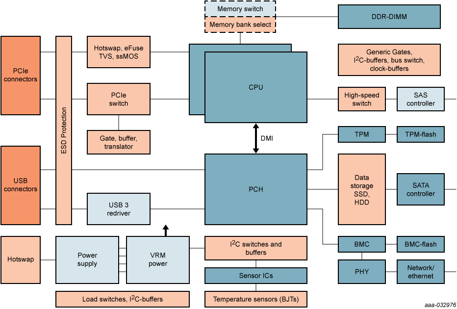 - Sensitive SoC inputs and outputs require ESD protection while maintaining high data rates and signal integrity (Ethernet, PCIe, SATA, USB3, USB4 and Thunderbolt 3)