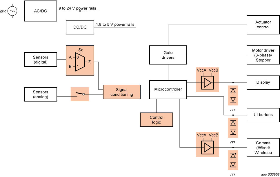 - Range of actuators and motors from simple switch and cost-effective steppers to 3-phase motors for fine control over pumps.