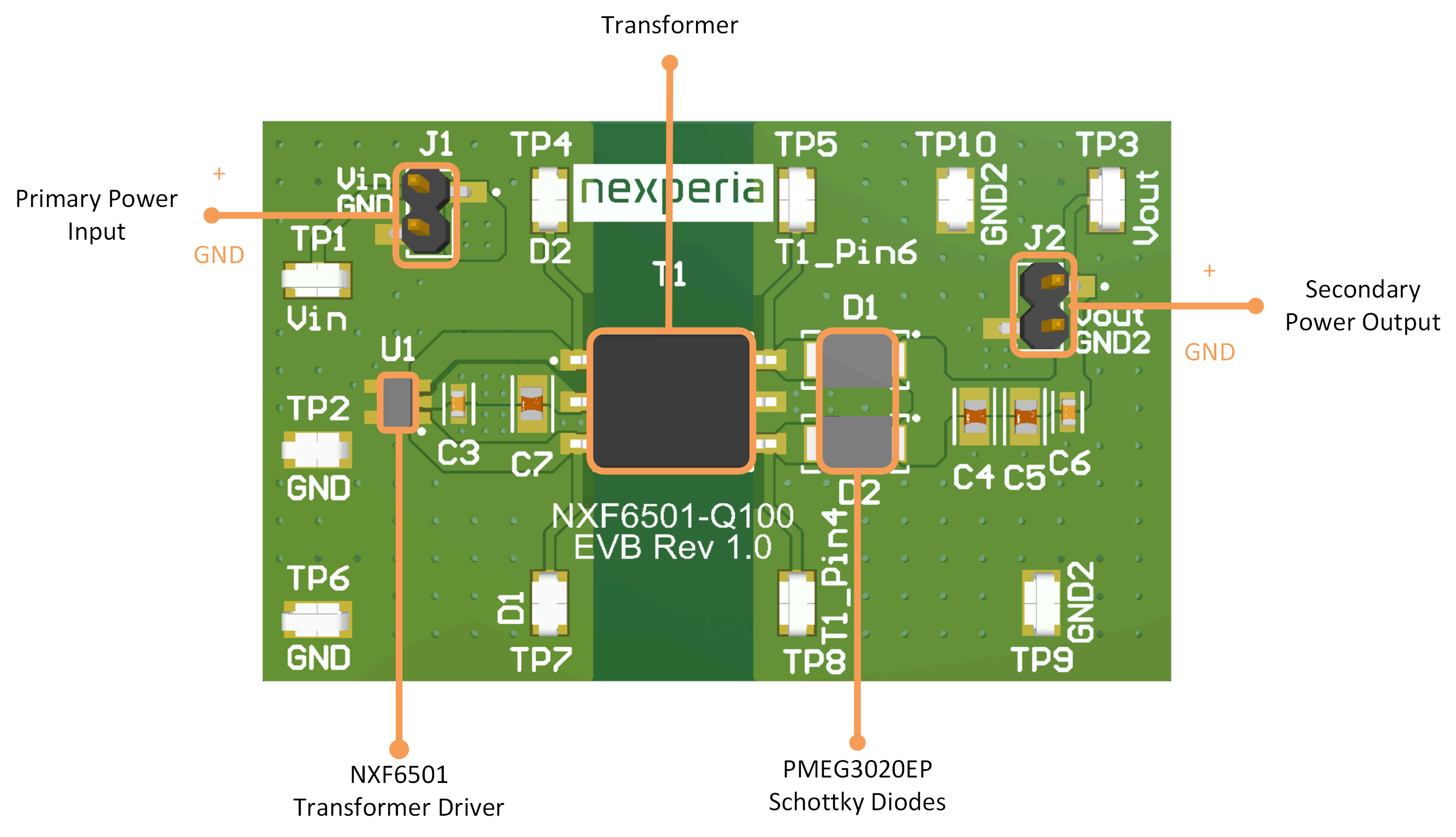 NXF6501評估板可用于評估Nexperia的NXF6501,后者是用于隔離電源的低噪聲、1.2 A推挽式變壓器驅動器。該EVB可為隔離電源提供一個正輸出電壓。為便于評估該EVB,增加了用于測量電路電壓的測試點。