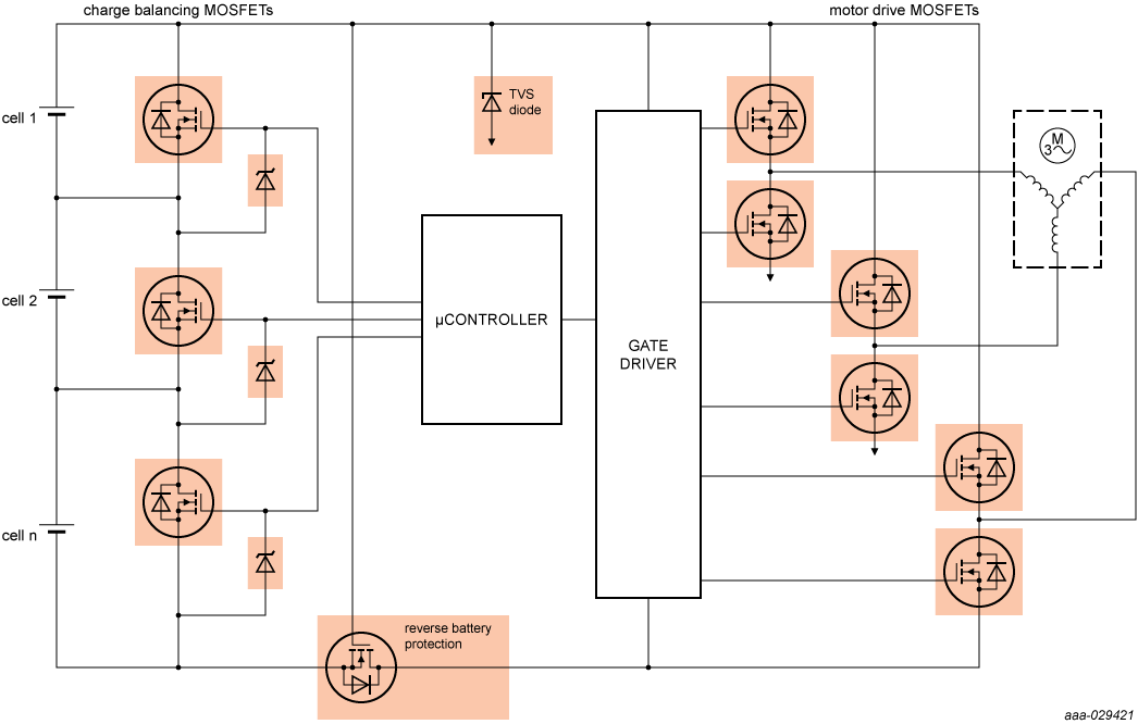 - 為小尺寸優化的電荷平衡MOSFET,通常裝在可移動電池組中——每個電池一個
