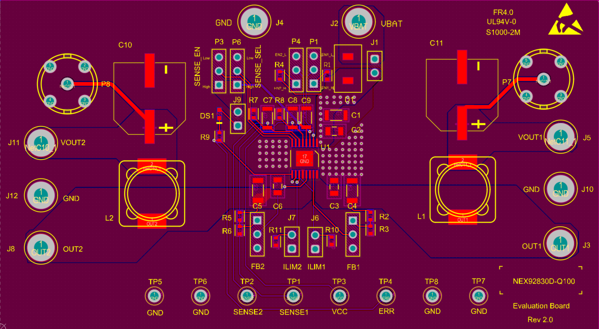 NEX92830DPCD-Q100 300毫安,帶有電流檢測的雙通道低壓降穩壓器評估板